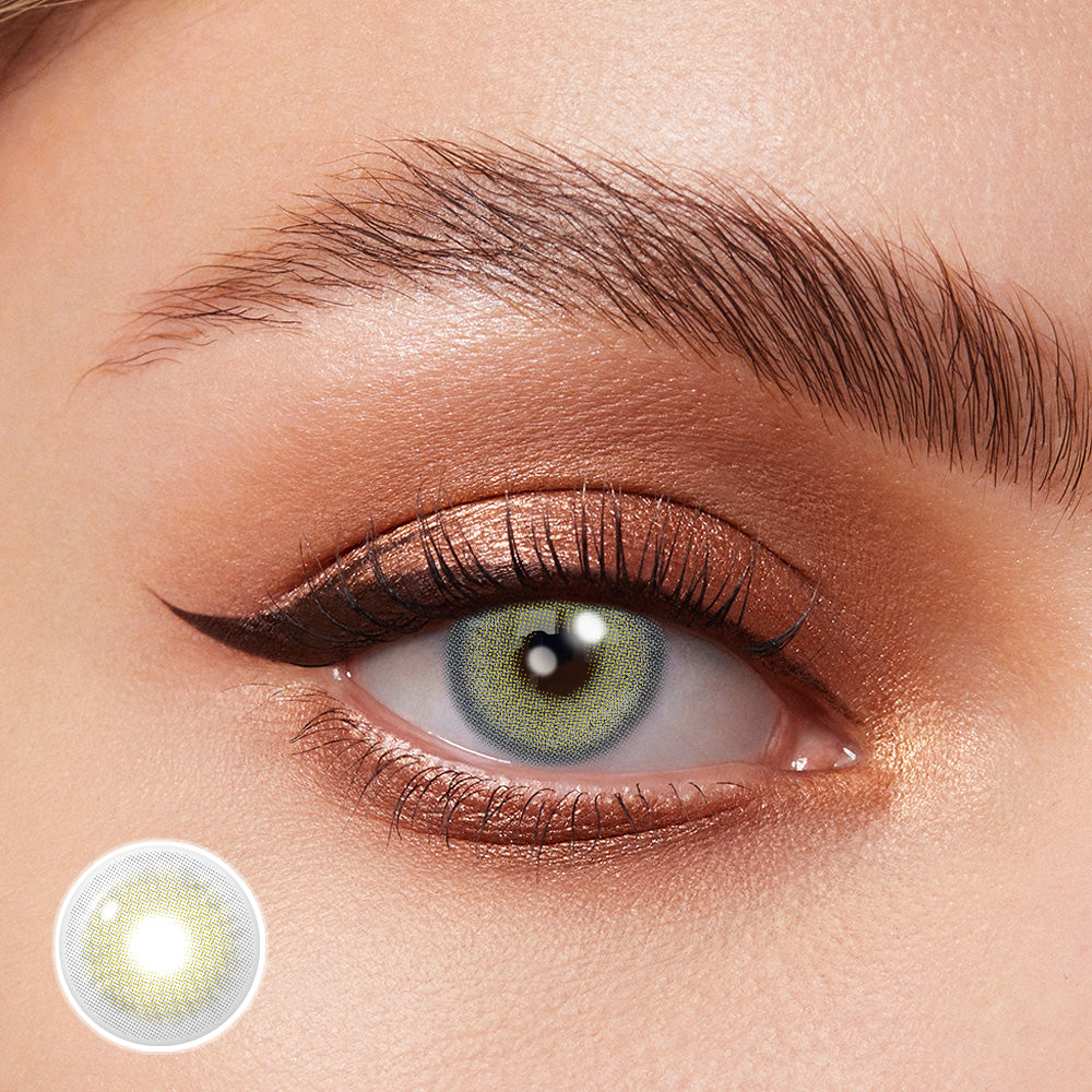 The lens design features a semi-transparent, finely diffused pattern that blends smoothly with your natural iris colour. Gentle tonal layering adds depth and dimension, while a softly defined limbal edge enhances the eye shape without creating harsh contrast. The result is a clean, organic green that enhances the gaze with understated elegance.